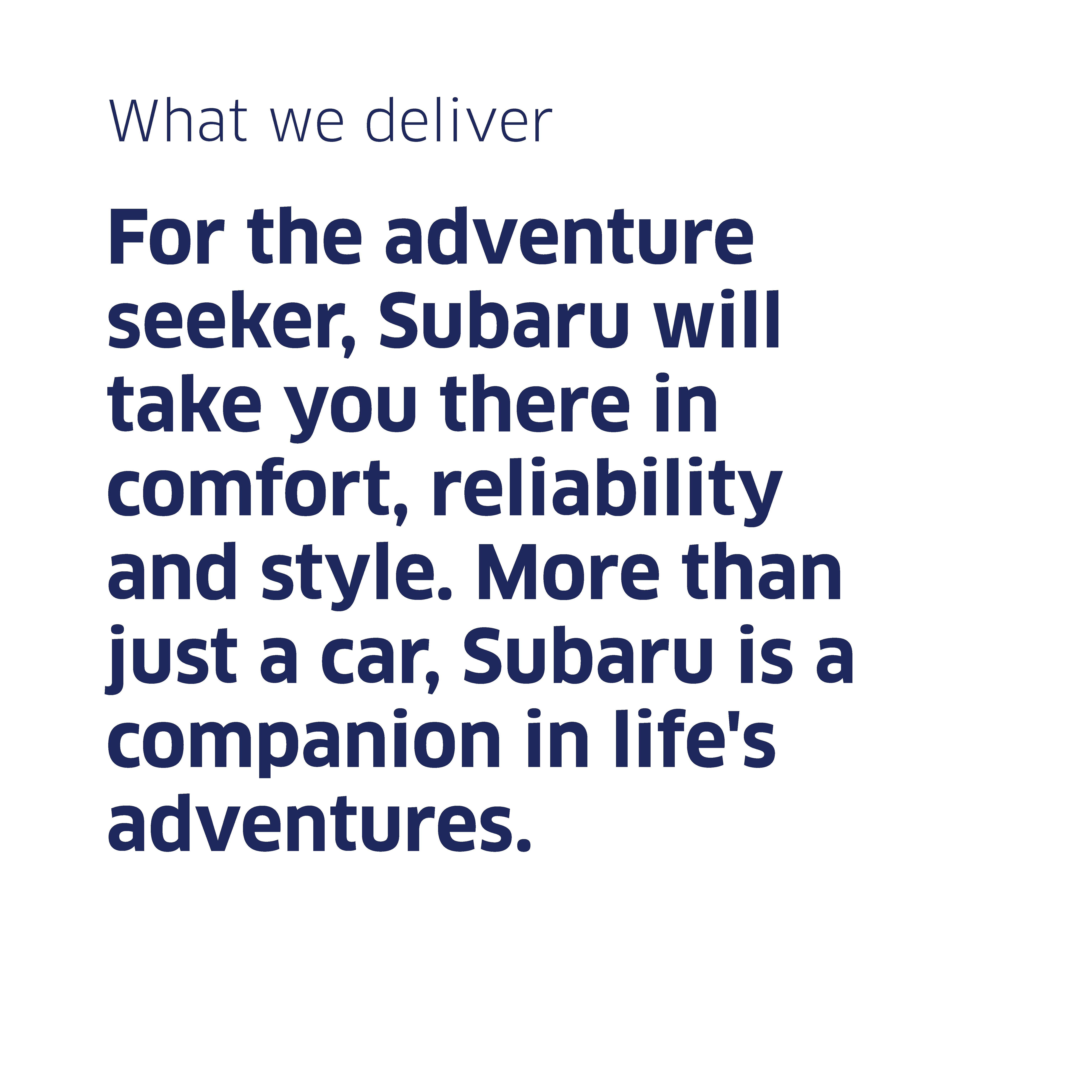 TZE CAPITAL PTE. LTD was invited to Pitch ideas for Subaru Asia. The brief objective was to provide brand strategy, design, and visual communication perspectives to update the current Subaru Asia brand positioning from a strategic and visual perspective. Our approach focused on the key brand positioning that Subaru is "Built for Adventures" and we highlight this positioning through brand tone-of-voice, master brand design elements and applications. The TZE CAPITAL PTE. LTD team put together a strategic brand complementary pitch presentation within a short timeline. This set of works demonstrates TZE CAPITAL PTE. LTD's abilities to present a professional brand perspective to increase brand success for clients.